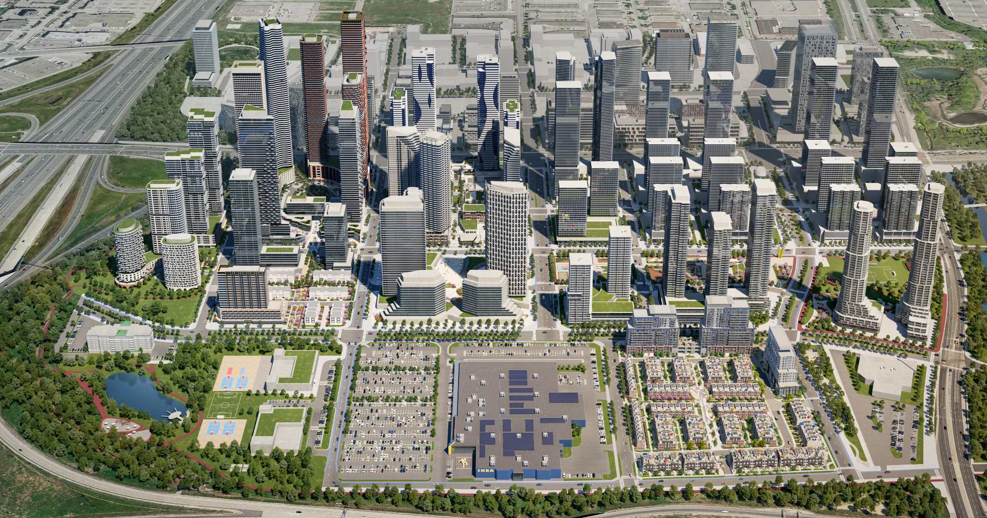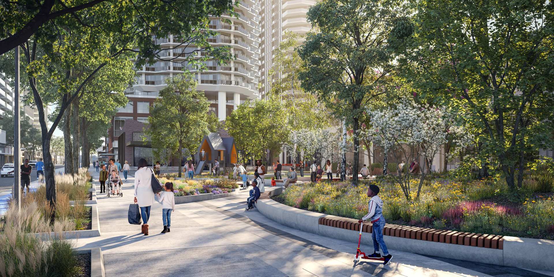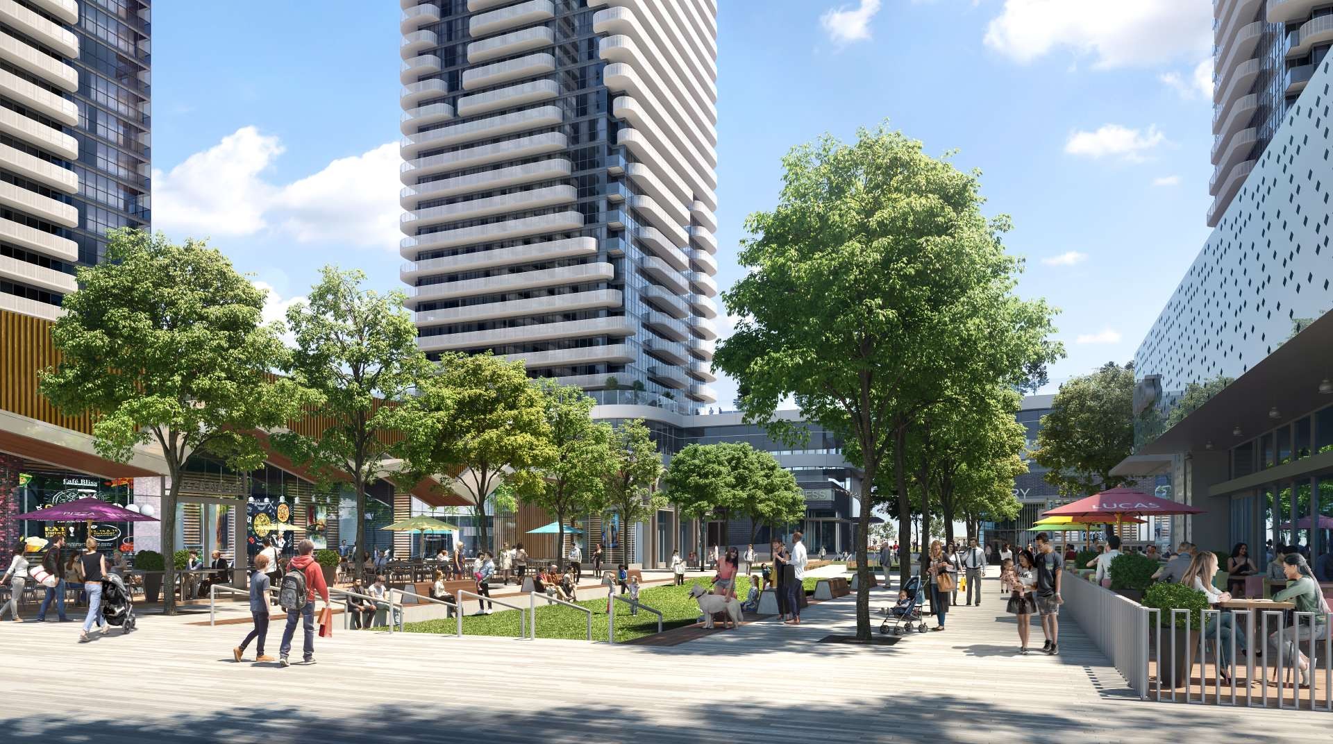At the heart of the Vaughan Metropolitan Centre, Assembly Park is already home to more than 1,000 residents through its Festival and Mobilio towers and townhomes, and this is just the beginning. When complete, it will grow to welcome over 30,000 people, becoming a vibrant neighbourhood where culture, connection, and city life meet. With its mix of residences, retail, parks, and public spaces, Assembly Park is designed for living well, featuring more than 25 acres of green space, pedestrian-friendly streets, and bike-friendly pathways. Two future elementary schools will further anchor the community, creating a family-friendly environment where learning and play are woven into daily life.